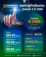 บมจ. เซ็ปเป้ (SAPPE) เปิดเผยผลการดำเนินงานไตรมาส 3/68 มีรายได้จากการขาย 1,349 ล้านบาท และกำไรสุทธิ 183 ล้านบาท โดยรายได้ชะลอตัว 13.9% YoY และกำไรลดลง 39.0% YoY ทั้งนี้ หลายตลาดเริ่มมีสัญญาณฟื้นตัวชัดเจน โดยเฉพาะยุโรปที่ทยอยกลับมาเติบโตตามแผน ขณะที่ต้นทุนวัตถุดิบสำคัญมีแนวโน้มลดลง