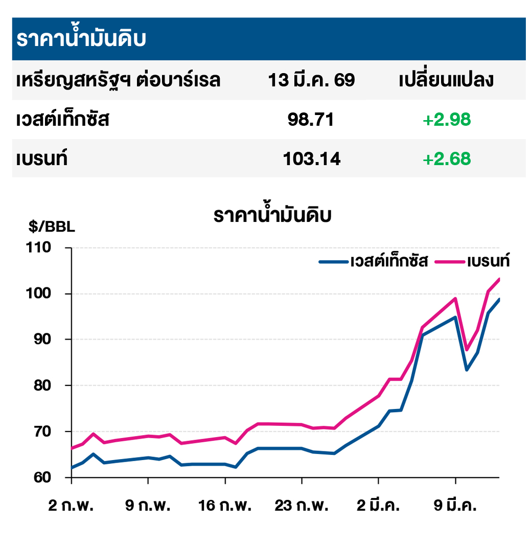 บมจ.ไทยออยล์วิเคราะห์ "ราคาน้ำมันดิบปรับตัวเพิ่มขึ้น หลังสหรัฐฯ โจมตีเกาะ Kharg ศูนย์กลางการส่งออกน้ำมันอิหร่าน"