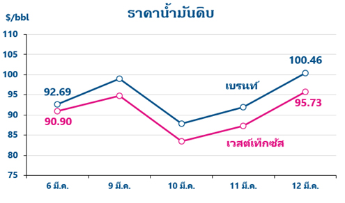 บมจ.ไทยออยล์วิเคราะห์สถานการณ์น้ำมันประจำสัปดาห์ "ราคาน้ำมันดิบผันผวนสูงหลังช่องแคบฮอร์มุซยังคงปิดต่อเนื่อง ท่ามกลางแผนการระบายน้ำมันจากคลังน้ำมันสำรองทางยุทธศาสตร์"