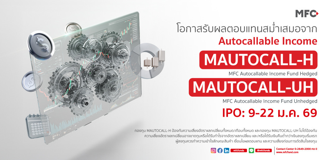 MFC เปิด IPO กองทุน "MAUTOCALL" 9-22 ม.ค. นี้ ชูรับผลตอบแทนสม่ำเสมอ - เข้าถึงการลงทุน Autocallable
