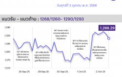 ตลาดหุ้นปิด (2 ต.ค.68) บวก 13.26 จุด ดัชนี 1,288.29 จุด