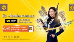 รับ - ส่งเงินโอนต่างประเทศ Western Union ผ่าน krungsri app รับฟรี Starbucks e-Coupon