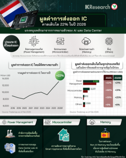 มูลค่าการส่งออก IC ไทยปี 2026 คาดโต 22% จากแรงหนุนการลงทุนด้าน AI และ Data Center ทั่วโลก แม้ไทยไม่ไ...