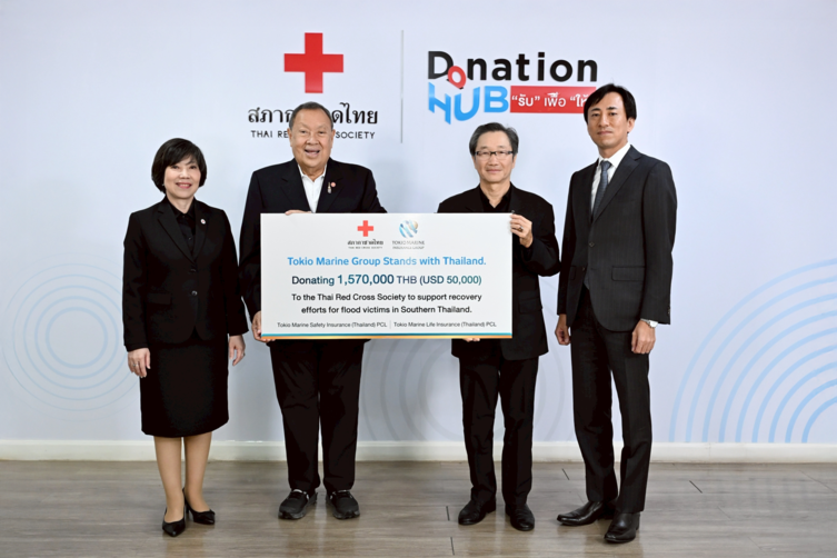 บริษัท คุ้มภัยโตเกียวมารีนประกันภัย (ประเทศไทย) จำกัด (มหาชน) และ บริษัท โตเกียวมารีนประกันชีวิต (ประเทศไทย) จำกัด (มหาชน) ในฐานะตัวแทนของ กลุ่มบริษัทโตเกียวมารีน ผู้ดำเนินธุรกิจประกันภัยชั้นนำระดับโลกจากประเทศญี่ปุ่น ร่วมกันมอบเงินบริจาคจำนวน 50,000 ดอลลาร์สหรัฐ หรือประมาณ 1,570,000 บาท