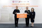 นางสาวดรัสวันต์ ชูวงษ์ รองกรรมการผู้จัดการ ธนาคารเพื่อการส่งออกและนำเข้าแห่งประเทศไทย (EXIM BANK) ร่วมแสดงความยินดีกับนายเขมชาติ อภิรัชตานนท์ รองกรรมการผู้จัดการ ธนาคารพัฒนาวิสาหกิจขนาดกลางและขนาดย่อมแห่งประเทศไทย (SME D Bank) พร้อมมอบเงินบริจาคสมทบกองทุนอาคารและเครื่องมือแพทย์