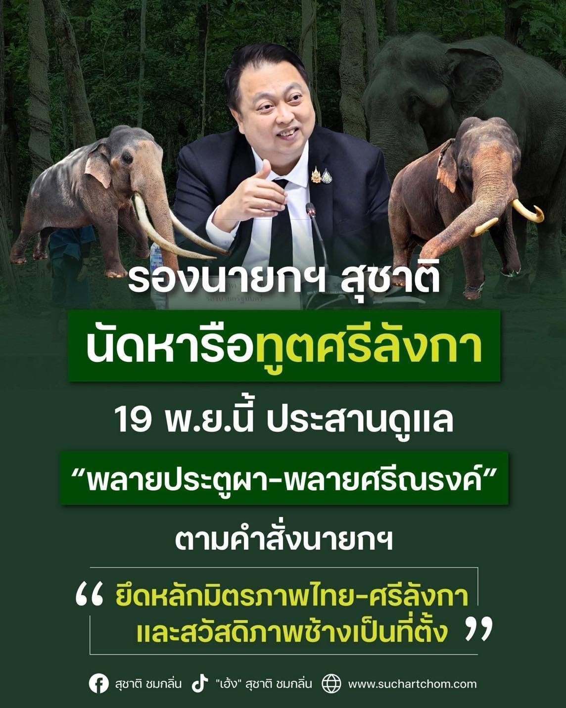 นางสาวลลิดา เพริศวิวัฒนา รองโฆษกประจำสำนักนายกรัฐมนตรี เปิดเผยว่า นายสุชาติ ชมกลิ่น รองนายกรัฐมนตรีและรัฐมนตรีว่าการกระทรวงทรัพยากรธรรมชาติและสิ่งแวดล้อม ได้ชี้แจงความคืบหน้าเกี่ยวกับการประสานนำ "พลายประตูผา" และ "พลายศรีณรงค์" กลับประเทศไทย โดยยืนยันว่ารัฐบาลไม่ได้นิ่งนอนใจ