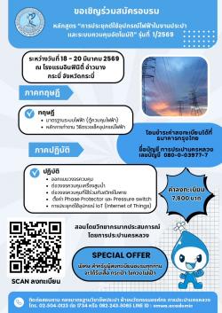 การประปานครหลวง (กปน.) ขอเชิญชวนผู้ที่สนใจเกี่ยวกับการควบคุมระบบไฟฟ้าในกระบวนการผลิตน้ำประปา สมัครเข้าร่วมฝึกอบรมหลักสูตร "การประยุกต์ใช้อุปกรณ์ไฟฟ้าในงานประปา และระบบควบคุมอัตโนมัติ" รุ่นที่ 1/2569 จำนวน 100 ท่าน โดยมีค่าลงทะเบียน 7,800 บาท (ไม่รวมค่าที่พัก) ซึ่งผู้เข้ารับการฝึกอบรม