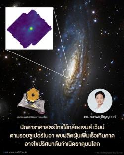 สถาบันวิจัยดาราศาสตร์แห่งชาติ (องค์การมหาชน) (สดร. หรือ NARIT) กระทรวงการอุดมศึกษา วิทยาศาสตร์ วิจัย และนวัตกรรม (อว.) เผย ดร. สมาพร ติญญนนท์ นักวิจัย สถาบันวิจัยดาราศาสตร์แห่งชาติ (NARIT) ใช้กล้องโทรทรรศน์อวกาศเจมส์ เว็บบ์ (JWST) ติดตามการระเบิดของซูเปอร์โนวา 2014C