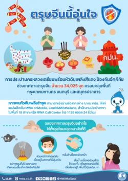 นายกิตติ ศรีพรหมมุนี ผู้อำนวยการฝ่ายสื่อสารองค์กร การประปานครหลวง (กปน.) กล่าวว่า ในช่วงเทศกาลตรุษจีนเป็นช่วงที่มีสถิติการเกิดเพลิงไหม้และอุบัติภัย กปน. มีความห่วงใยความปลอดภัยของประชาชน จึงขอให้เพิ่มความระมัดระวัง รวมทั้งลดความเสี่ยงจากกิจกรรมที่อาจทำให้เกิดเพลิงไหม้และอุบัติเหตุได้