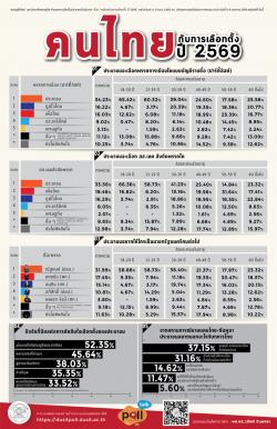 ศูนย์สำรวจความคิดเห็น "นิด้าโพล" สถาบันบัณฑิตพัฒนบริหารศาสตร์ (นิด้า) เปิดเผยผลการสำรวจ เรื่อง "ยกแรก กระแสเลือกตั้ง 69" ทำการสำรวจระหว่างวันที่ 5-8 มกราคม 2569 จากประชาชนที่มีอายุ 18 ปีขึ้นไป กระจายทุกภูมิภาค ระดับการศึกษา อาชีพ และรายได้ ทั่วประเทศ รวมจำนวนทั้งสิ้น 2,500 หน่วย