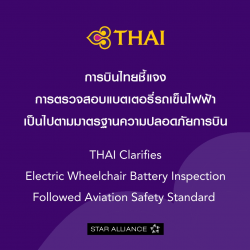 ตามที่ปรากฏในสื่อสังคมออนไลน์กรณีความเสียหายของอุปกรณ์รถเข็นไฟฟ้าของผู้โดยสาร ในเที่ยวบิน TG643 เส้นทางโตเกียว-กรุงเทพ วันที่ 13 พฤศจิกายน 2568