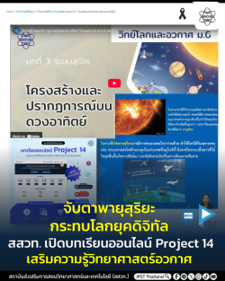 ท่ามกลางความสนใจของนานาชาติต่อปรากฏการณ์ พายุสุริยะ (Solar Storm) และ ลมสุริยะ (Solar Wind) ที่ส่งผลกระทบต่อเทคโนโลยีและระบบสื่อสารของโลกในปัจจุบัน สถาบันส่งเสริมการสอนวิทยาศาสตร์และเทคโนโลยี (สสวท.) ขอเชิญชวนครู นักเรียน และประชาชนทั่วไป เปิดโลกการเรียนรู้ปรากฏการณ์ทางฟิสิกส์จากดวงอาทิตย์