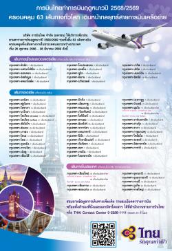 บริษัท การบินไทย จำกัด (มหาชน) ให้บริการเที่ยวบินตามตารางการบินฤดูหนาวปี 2568/2569 รวมทั้งสิ้น 63 เส...