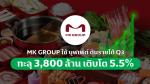 หลังจาก MK ส่งบุฟเฟต์ลุยตลาด ทั้ง "MK คุ้มเกินคุ้ม 299 บาท" และ "MK Premium Buffet" ส่งผลให้ยอดขายรวม ไตรมาส 3 ปี 2568 เติบโตขึ้นอย่างมีนัยสำคัญ โดยมีเทรนด์การเติบโตขึ้นต่อเนื่องในทุกไตรมาสตั้งแต่ต้นปี ซึ่งช่วยเสริมความแข็งแกร่งให้กับภาพรวมของกลุ่มในปีนี้