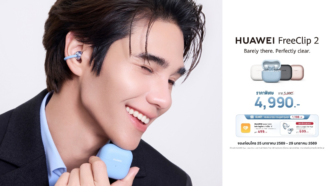 หัวเว่ย คอนซูมเมอร์ บิสสิเนส กรุ๊ป (ประเทศไทย) ประกาศเปิดพรีออเดอร์ HUAWEI FreeClip 2 อย่างเป็นทางกา...