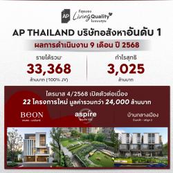 เอพี ไทยแลนด์ ย้ำบริษัทอสังหาอันดับ 1 ประกาศรายได้รวม 9 เดือน 33,368 ล้าน กำไรสุทธิสูงถึง 3,025 ล้าน