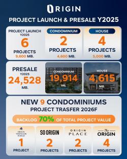 ออริจิ้น พร็อพเพอร์ตี้ เผยยอดขายบ้านและคอนโดฯ ปี 2568 รวมกว่า 24,500 ล้านบาท ทั้งจากโครงการพร้อมอยู่...