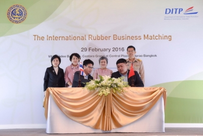 วันนี้( 29 กุมภาพันธ์ 2559) ณ โรงแรมเซ็นทารา แกรนด์ แอท เซ็นทรัลพลาซ่า ลาดพร้าว นางอภิรดี ตันตราภรณ์ รัฐมนตรีว่าการกระทรวงพาณิชย์ เปิดเผยถึง การเจรจาการค้ายางพาราและผลิตภัณฑ์ยางพารา ระหว่างผู้นำเข้าต่างประเทศและผู้ประกอบการไทยว่า มีผู้ซื้อผู้นำเข้าประมาณ 150 ราย จาก 28 ประเทศทั่วโลก อาทิ ประเทศในอาเซียน อินเดีย จีน ไต้หวัน ฮ่องกง เกาหลีใต้ ญี่ปุ่น สหภาพยุโรป รัสเซีย เบลารุส แอฟริกาใต้ อียิปต์ ไนจีเรีย ซาอุดิอาระเบีย ตุรกี และสหรัฐอเมริกา โดยมีผู้ประกอบการไทย 109 ราย เข้าร่วมการเจรจาและจับคู่ธุรกิจในครั้งนี้ คาดว่าการจับคู่ธุรกิจครั้งนี้จะเกิดมูลค่าการซื้อขายโดยรวม (ยางพาราธรรมชาติและผลิตภัณฑ์ยางอื่นๆ) กว่า 10,000 ล้านบาท