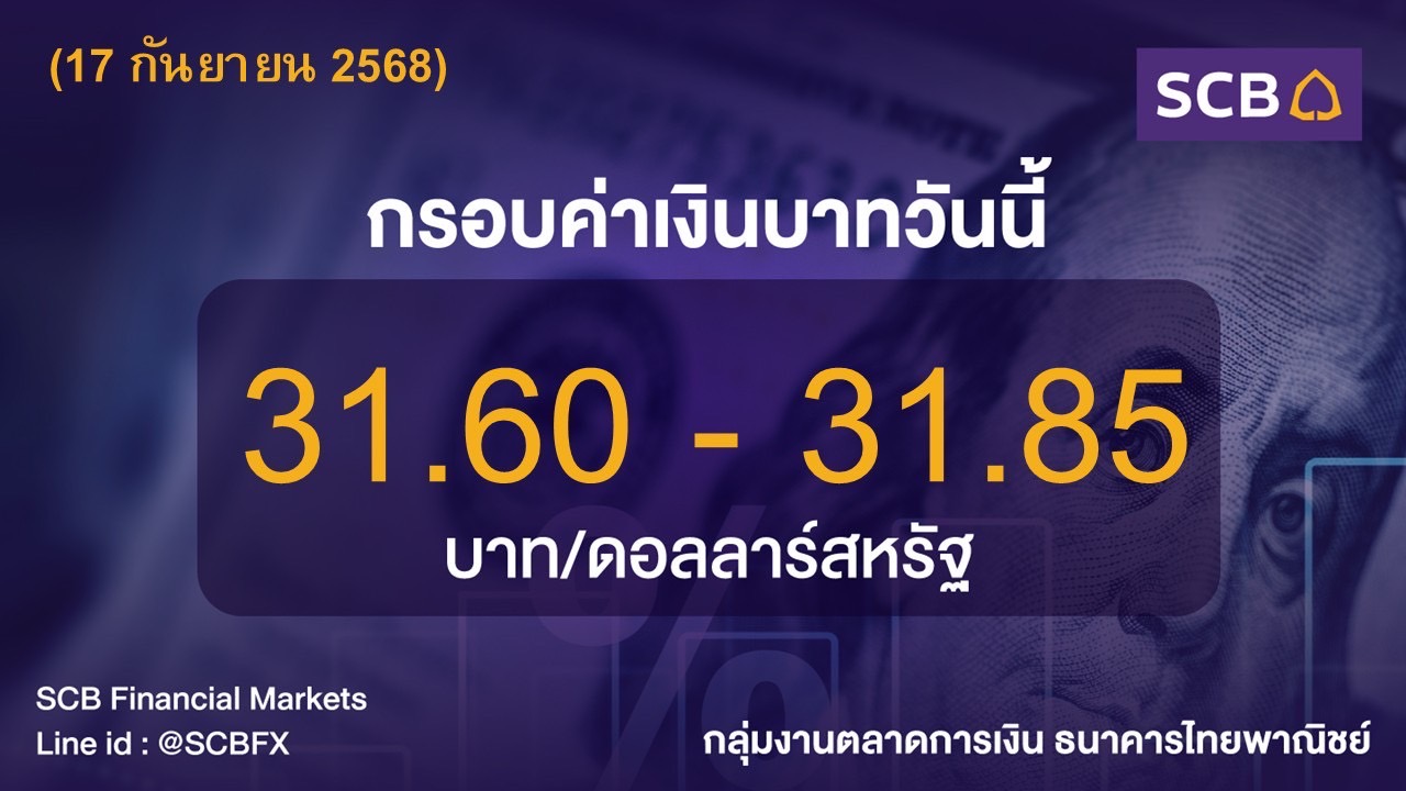 • กลุ่มงานตลาดการเงิน ธนาคารไทยพาณิชย์ ประเมินค่าเงินบาทวันนี้เคลื่อนไหวในกรอบ 31.60-31.85 บาท/ดอลลาร์