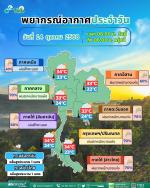 กรมอุตุนิยมวิทยา พยากรณ์อากาศ 24 ชั่วโมงข้างหน้า วันที่ 14 ตุลาคม 2568 ภาคตะวันออกเฉียงเหนือ ภาคกลางตอนล่าง รวมทั้งกรุงเทพมหานครและปริมณฑล ภาคตะวันออก และภาคใต้มีฝนตกหนักบางพื้นที่ เนื่องจากร่องมรสุมพาดผ่านภาคกลางตอนล่าง ภาคใต้ตอนบน และภาคตะวันออก ประกอบกับมรสุมตะวันตกเฉียงใต้ยังคงพัดปกคลุมทะเลอันดามัน ภาคใต้ตอนล่าง และอ่าวไทย ในขณะที่มีลมตะวันออกเฉียงใต้พัดนำความชื้นจากทะเลจีนใต้เข้าปกคลุมภาคตะวันออกเฉียงเหนือ ขอให้ประชาชนในบริเวณดังกล่าวระวังอันตรายจากฝนฟ้าคะนอง ฝนตกหนัก และฝนที่ตกสะสม รวมทั้งเพิ่มความระมัดระวังในการสัญจรผ่านบริเวณที่มีน้ำท่วมขัง ควรพกร่มและเสื้อกันฝนเมื่อออกนอกบ้านในระยะนี้ไว้ด้วย