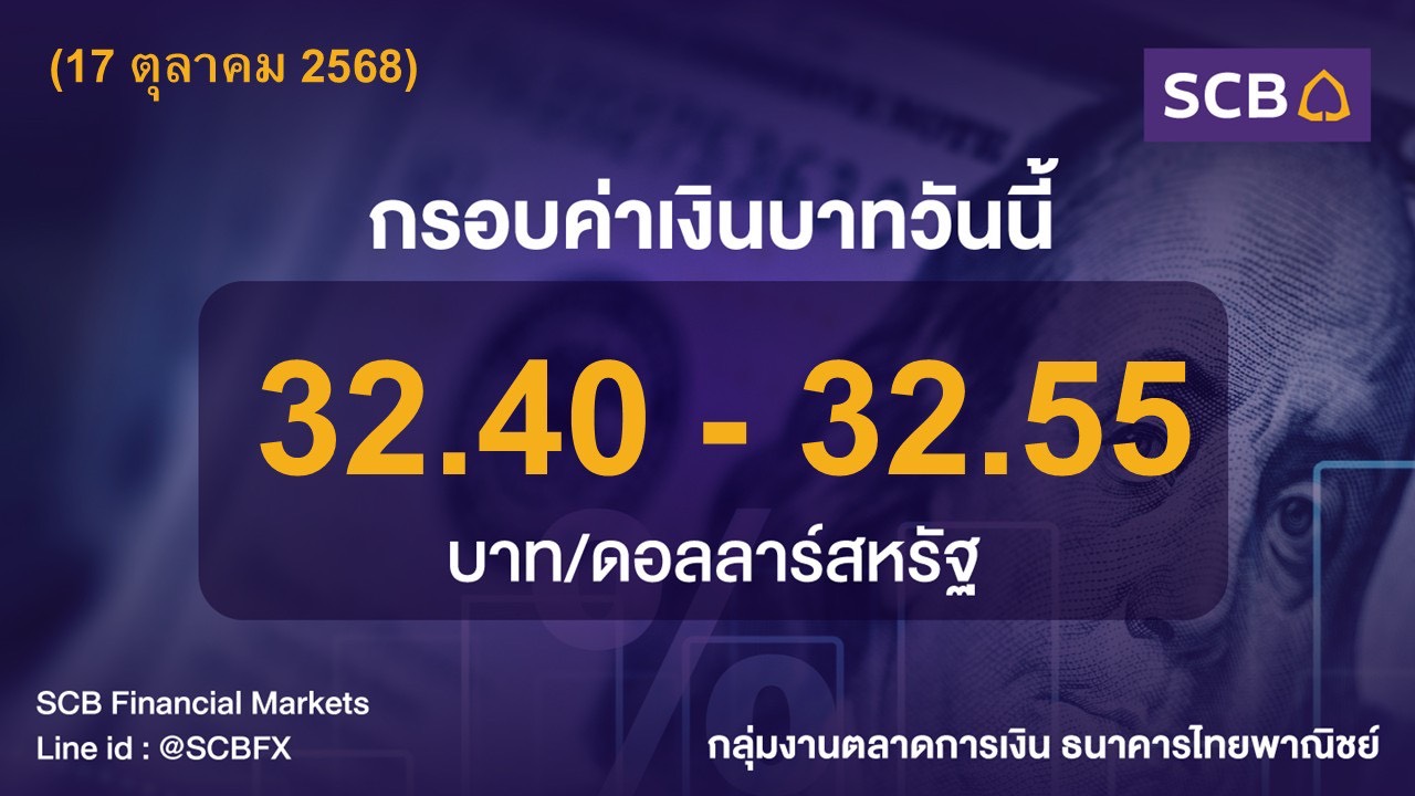 • กลุ่มงานตลาดการเงิน ธนาคารไทยพาณิชย์ ประเมินค่าเงินบาทวันนี้เคลื่อนไหวในกรอบ 32.40-32.55 บาท/ดอลลาร์
