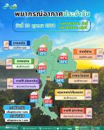 กรมอุตุนิยมวิทยา พยากรณ์อากาศ 24 ชั่วโมงข้างหน้า วันที่ 20 ตุลาคม 2568 ภาคใต้มีฝนตกหนักบางแห่ง ส่วนประเทศไทยตอนบนมีฝนน้อย เนื่องจากลมตะวันออกพัดปกคลุมอ่าวไทย ประเทศไทย และทะเลอันดามัน ขอให้ประชาชนบริเวณภาคใต้ระวังอันตรายจากฝนฟ้าคะนองฝนตกหนัก และฝนที่ตกสะสม รวมทั้งเพิ่มความระมัดระวังในการสัญจรผ่านบริเวณที่มีน้ำท่วมขังในระยะนี้ไว้ด้วย