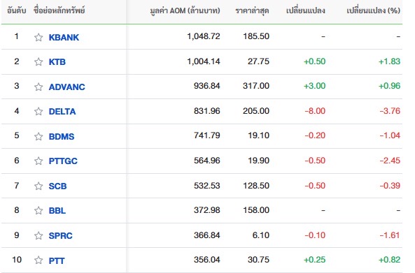 10 อันดับหลักทรัพย์ที่มีมูลค่าการซื้อขายสูงสุด