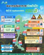 กรมอุตุนิยมวิทยา พยากรณ์อากาศ 24 ชั่วโมงข้างหน้า วันที่ 19 พฤศจิกายน 2568 ประเทศไทยตอนบนจะมีอุณหภูมิลดลงกับมีลมแรง แต่ยังคงมีฝนบางพื้นที่ โดยภาคตะวันออกเฉียงเหนือ อุณหภูมิจะลดลง 2-4 องศาเซลเซียส ส่วนภาคเหนือ ภาคกลาง รวมทั้งกรุงเทพมหานครและปริมณฑล และภาคตะวันออก อุณหภูมิจะลดลง 1-3 องศาเซลเซียส ขอให้ประชาชนในบริเวณดังกล่าวดูแลรักษาสุขภาพเนื่องจากสภาพอากาศที่เปลี่ยนแปลง ส่วนเกษตรกรควรป้องกันและระวังความเสียหายที่จะเกิดต่อผลผลิตทางการเกษตรไว้ด้วย ทั้งนี้เนื่องจากบริเวณความกดอากาศสูงหรือมวลอากาศเย็นกำลังแรงจากประเทศจีนได้แผ่ปกคลุมภาคตะวันออกเฉียงเหนือและภาคเหนือตอนบนแล้ว และจะแผ่ปกคลุมภาคกลางและภาคตะวันออกในระยะต่อไป