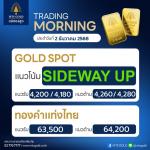 ในเชิงเทคนิค ราคาทองคำยังคงรักษาแนวโน้มหลักเป็นขาขึ้น โดยในระยะสั้นนี้มีการเคลื่อนไหวในลักษณะ "Sideway Up" แต่นักลงทุนควรเฝ้าระวังและบริหารจัดการความเสี่ยง เนื่องจากมีความผันผวน และอาจมีแรงขายทำกำไรในระยะสั้น โดยภาพรวมยังมองว่าเป็นโอกาสในการย่อซื้อ ประเมินกรอบระยะสั้น แนวรับที่ 4,200-4,180 เหรียญ และแนวต้านที่ 4,250-4,280 เหรียญ ขณะที่ทองไทยจะมีแนวรับที่ 63,500 บาท และแนวต้านที่ 64,200 บาท