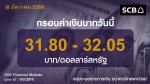 • กลุ่มงานตลาดการเงิน ธนาคารไทยพาณิชย์ ประเมินค่าเงินบาทวันนี้เคลื่อนไหวในกรอบ 31.80 - 32.05 บาท/ดอลลาร์