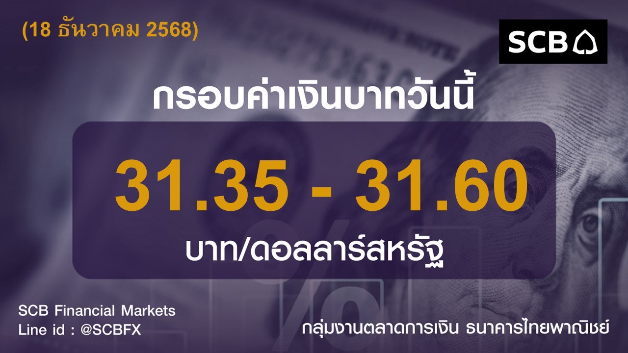 • กลุ่มงานตลาดการเงิน ธนาคารไทยพาณิชย์ ประเมินค่าเงินบาทวันนี้เคลื่อนไหวในกรอบ 31.35-31.60