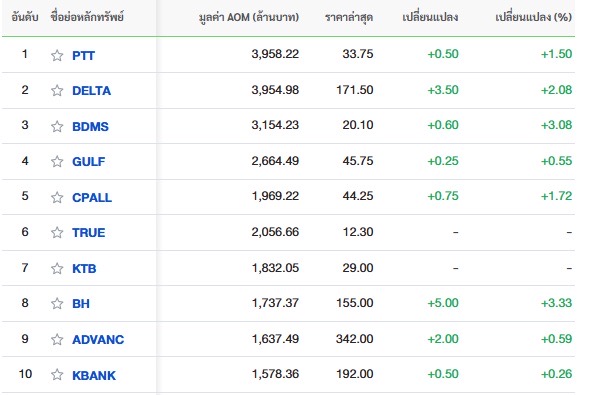 10 อันดับหลักทรัพย์ที่มีมูลค่าการซื้อขายสูงสุด