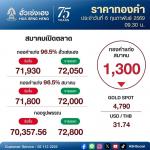 ราคาทองวันนี้ (6 ก.พ. 69) เปิดตลาด ร่วงลง 1,300 บาท ทองรูปพรรณ ขายออก 72,800 บาท