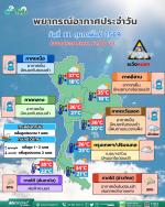 กรมอุตุนิยมวิทยา พยากรณ์อากาศ 24 ชั่วโมงข้างหน้า วันที่ 11 กุมภาพันธ์ 2569 ประเทศไทยตอนบนมีอุณหภูมิสูงขึ้น แต่ยังคงมีอากาศเย็นกับมีหมอกในตอนเช้า เนื่องจากบริเวณความกดอากาศสูงหรือมวลอากาศเย็นกำลังปานกลางปกคลุมประเทศไทยตอนบน ขอให้ประชาชนบริเวณประเทศไทยตอนบนดูแลรักษาสุขภาพเนื่องจากสภาพอากาศที่เปลี่ยนแปลง และขอให้ประชาชนบริเวณภาคเหนือและภาคตะวันออกเฉียงเหนือ ควรระมัดระวังในการสัญจรผ่านบริเวณที่มีหมอกไว้ด้วย