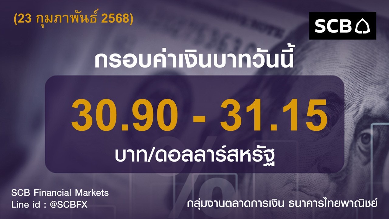 • กลุ่มงานตลาดการเงิน ธนาคารไทยพาณิชย์ ประเมินค่าเงินบาทวันนี้เคลื่อนไหวในกรอบ 30.90-31.15บาท/ดอลลาร์