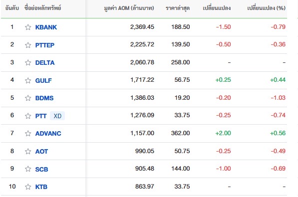 10 อันดับหลักทรัพย์ที่มีมูลค่าการซื้อขายสูงสุด