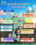 อุณหภูมิสูงสุด 31-36 องศาเซลเซียส ลมตะวันออกเฉียงใต้ ความเร็ว 10-20 กม./ชม.