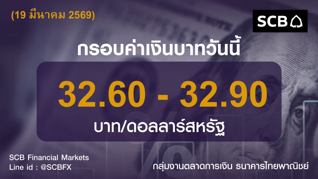 • กลุ่มงานตลาดการเงิน ธนาคารไทยพาณิชย์ ประเมินค่าเงินบาทวันนี้เคลื่อนไหวในกรอบ 32.60-32.90 บาท/ดอลลาร์