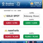 ทองเปิดตลาดวันนี้ (19 มี.ค.69) ร่วงลง 1,100 บาท ทองรูปพรรณ ขายออก 76,200 บาท