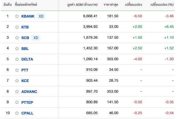 10 อันดับหลักทรัพย์ที่มีมูลค่าการซื้อขายสูงสุด