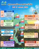 อากาศร้อนในตอนกลางวัน โดยมีฝนฟ้าคะนอง ร้อยละ 10 ของพื้นที่ อุณหภูมิต่ำสุด 28-29 องศาเซลเซียส อุณหภูมิสูงสุด 36-38 องศาเซลเซียส ลมใต้ ความเร็ว 10-20 กม./ชม.